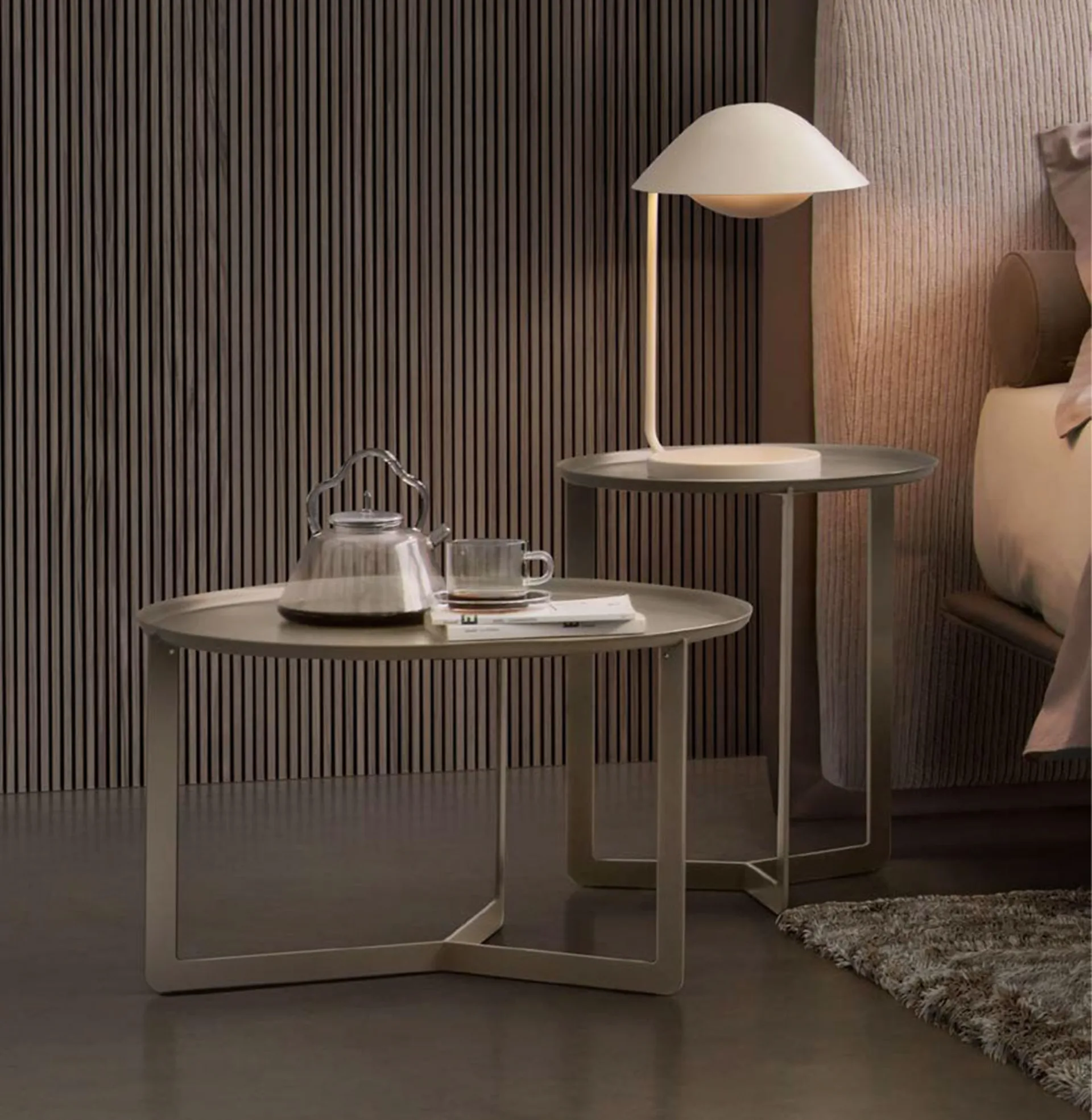 Complementi moderni e tavolini in metallo: ottieni informazioni sul modello Tavolino Round di Rosini Night e potrai arricchire i tuoi locali.