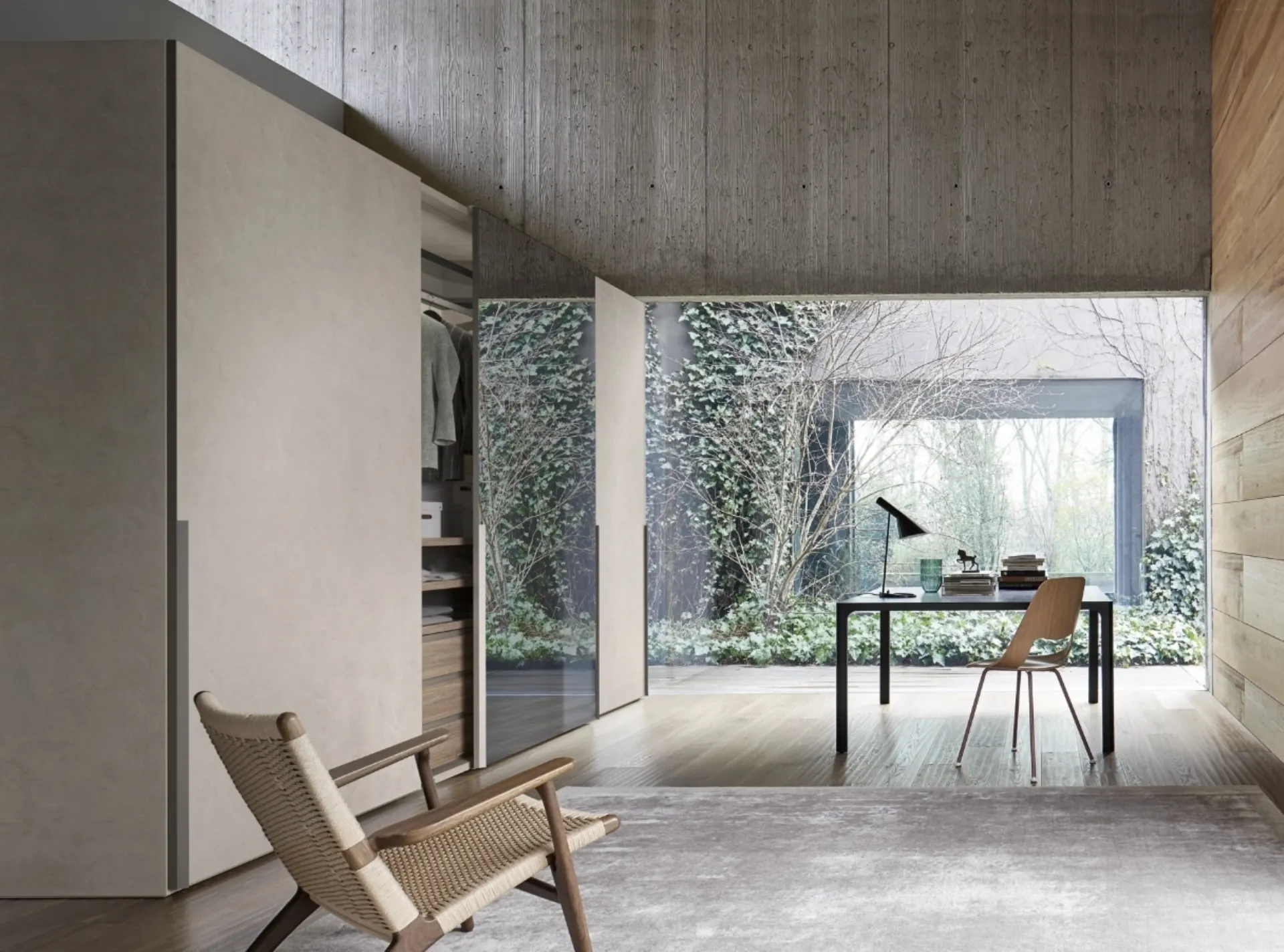 Se cerchi armadiature a muro con ante scorrevoli, clicca e scopri l'armadio Ala Loto Tortora di Sangiacomo in melaminico.