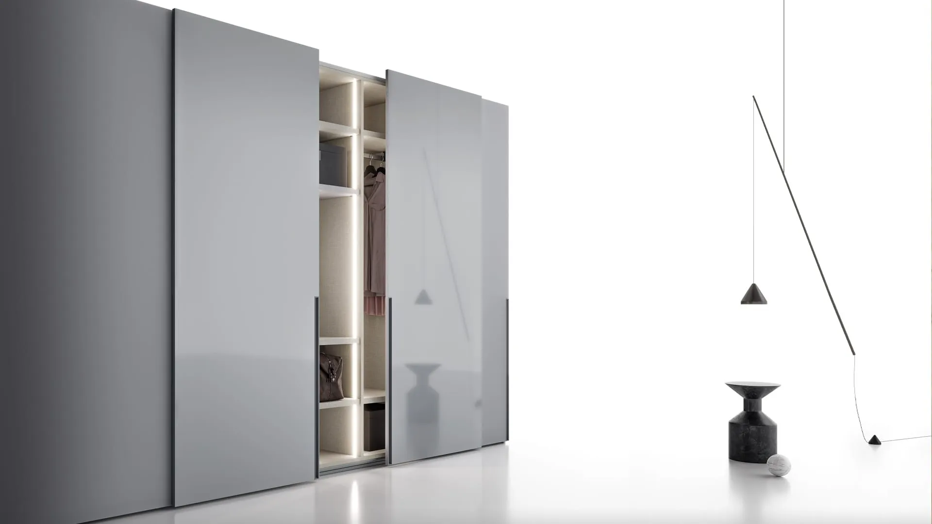 Eccoti l'armadio Ego Scorrevole in laccato opaco di SantaLucia! Un ricco catalogo di armadi ad angolo con ante scorrevoli.