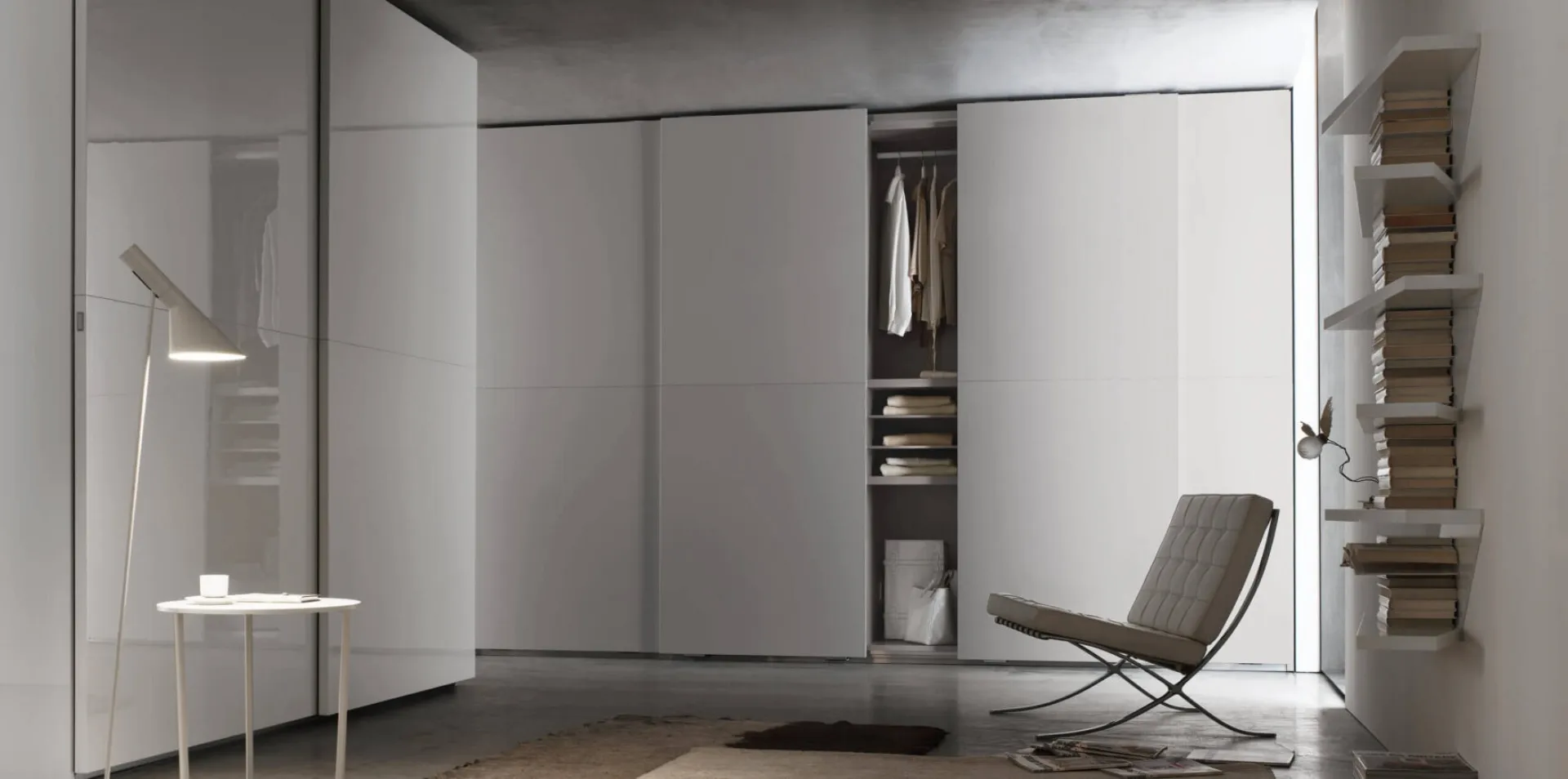 Gli Armadi e le cabine armadio con ante scorrevoli devono ammobiliare la camera garantendoti una perfetta ottimizzazione degli spazi e un'esclusiva ricerca stilistica. Per completare perfettamente il progetto d'arredo, scegli le nostre proposte di Arredamento Casa delle migliori marche, letti, armadi e comodini vari per eleganza, dimensione e finitura. Contattaci per info e preventivi e potrai completare la camera da letto che hai sempre voluto grazie ad una diversificata varietà di contenitori moderni come questo armadio in melaminico nell'immagine. La camera da letto è dedicata al relax, deve quindi risultare arredata con gusto e completa di mobili e oggetti accessori in grado di creare un'ambientazione sempre rasserenante.
