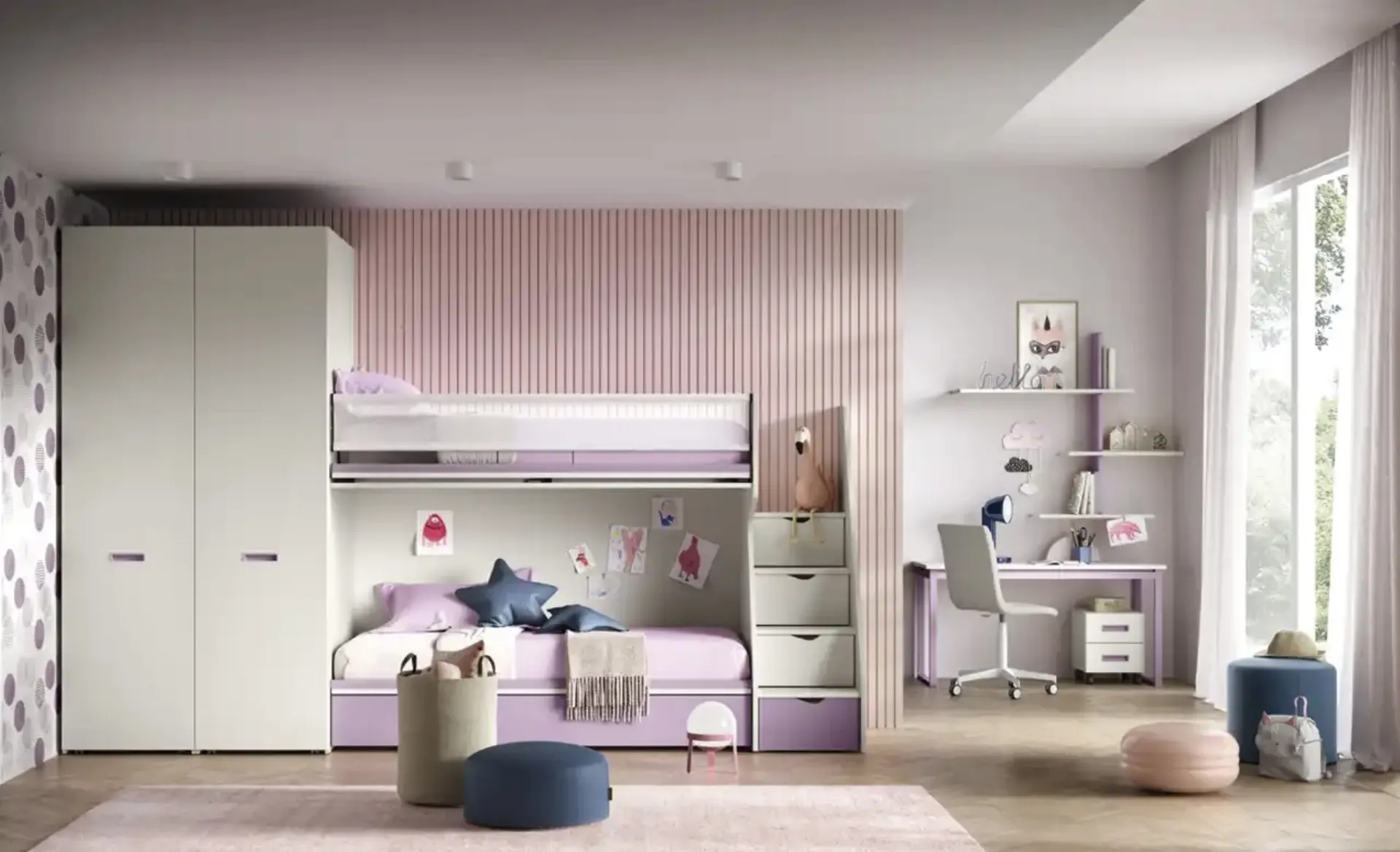 Le più belle camerette per bambine moderne ti aspettano! Scopri il modello K103 di Moretti Compact Camerette.