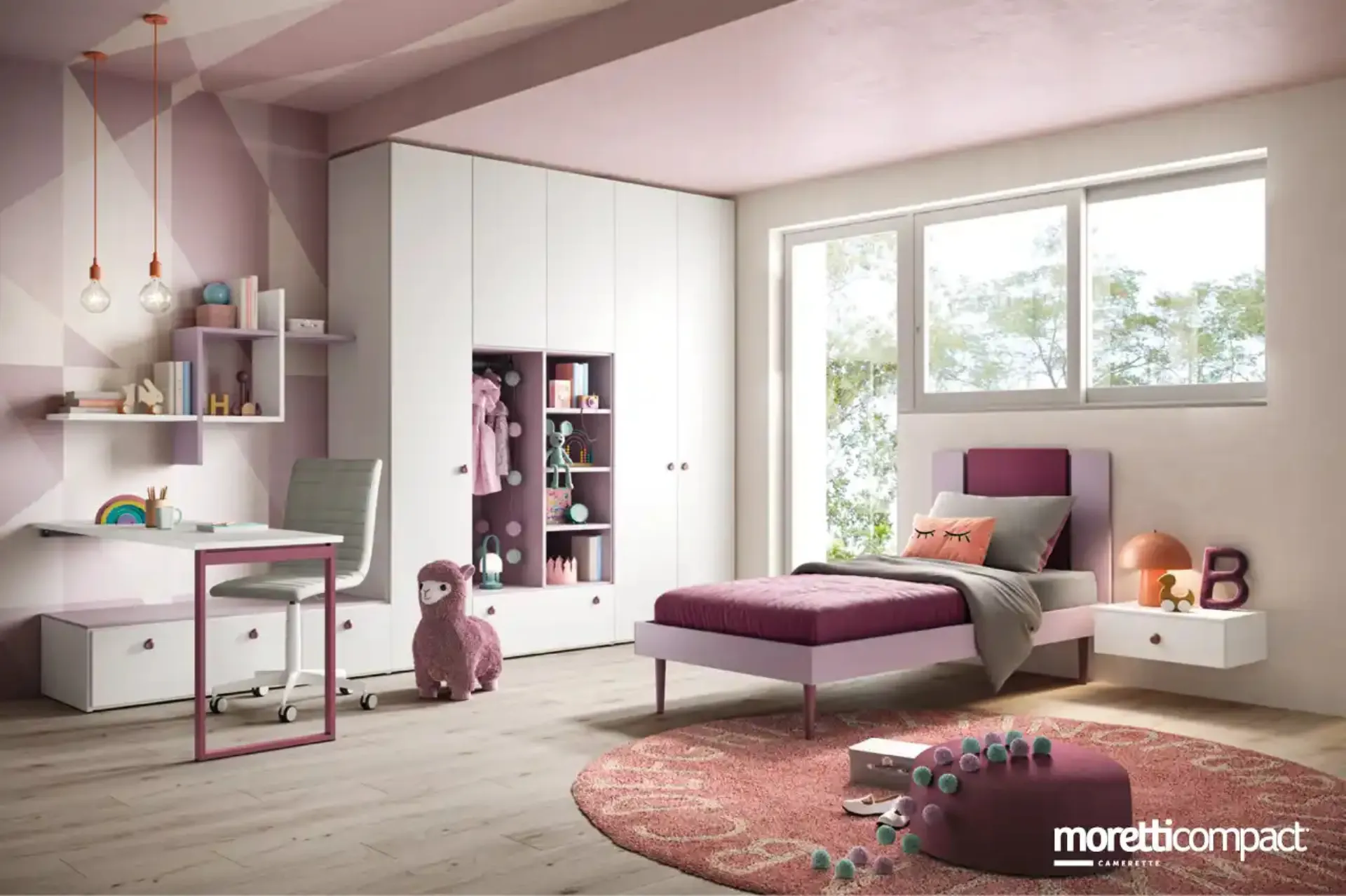 Camerette componibili per bambine: scopri il modello in melaminico K112 di Moretti Compact Camerette per stanzette moderne.