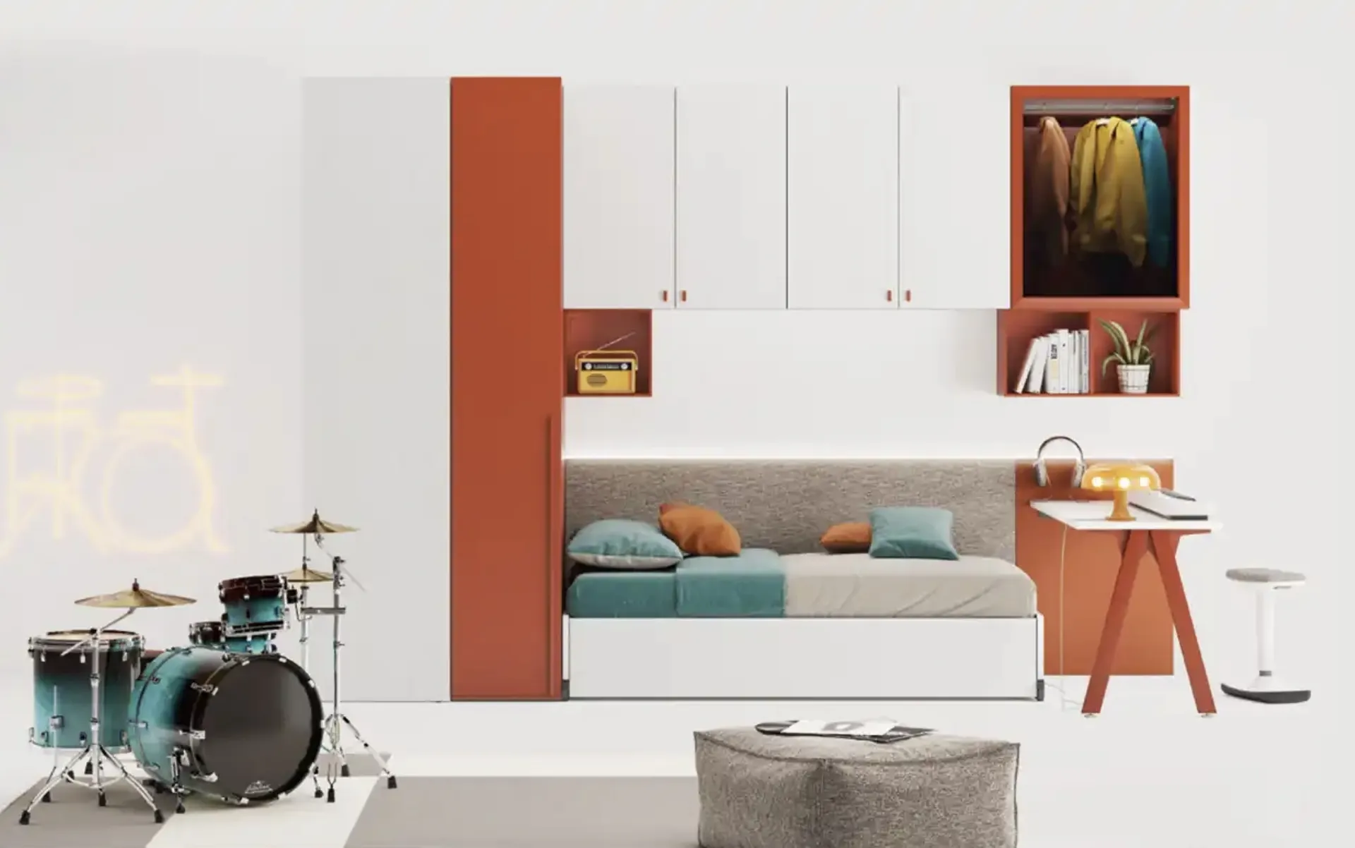 Arreda stanzette moderne con le Camerette a ponte Moretti Compact Camerette! Il modello YGAB in melaminico è per ragazzi.