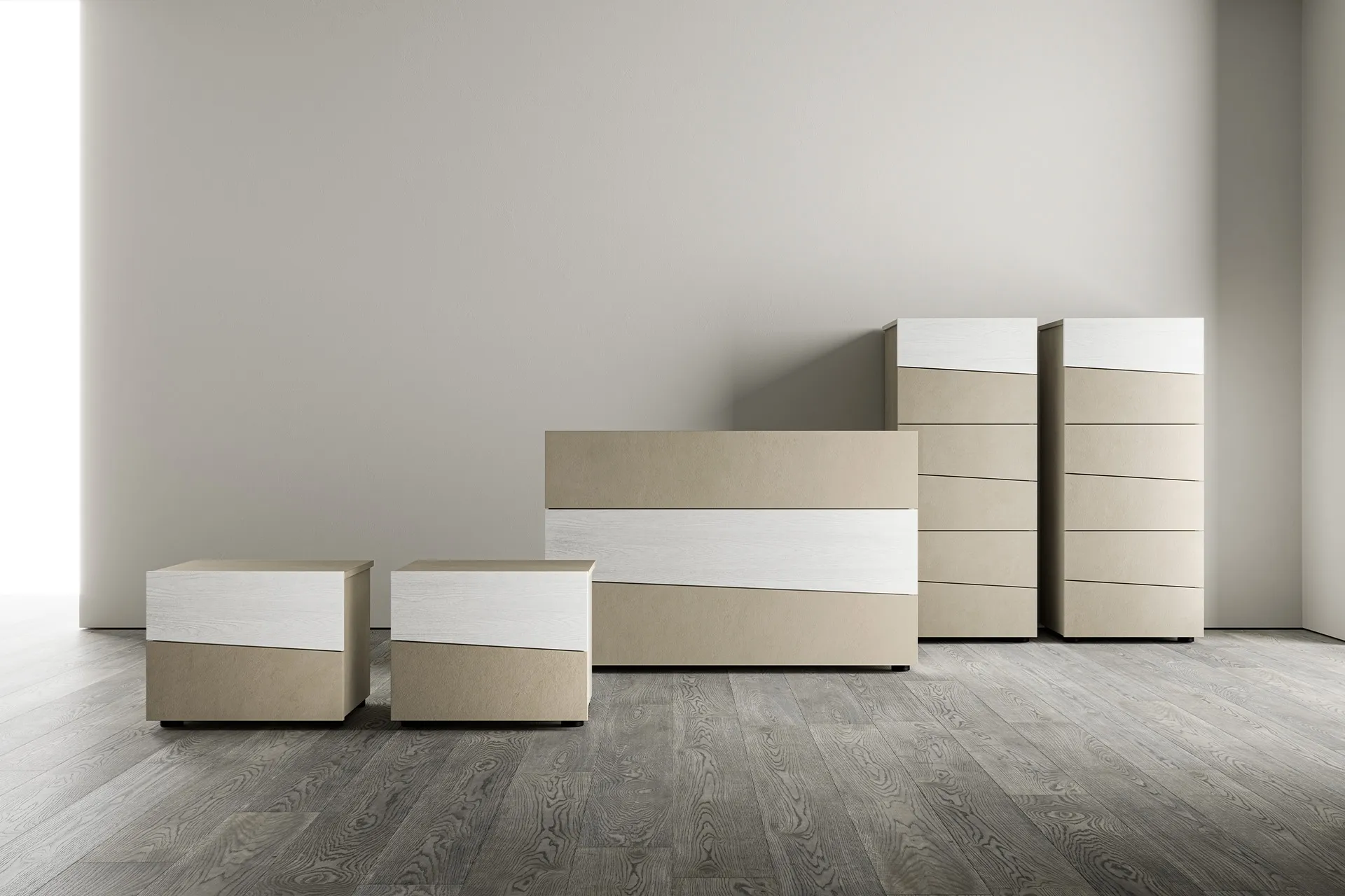 Scopri Comodini moderni e mobili con cassetti SantaLucia! Il modello Ambra Gruppo Notte costruito in melaminico è l'acquisto perfetto.
