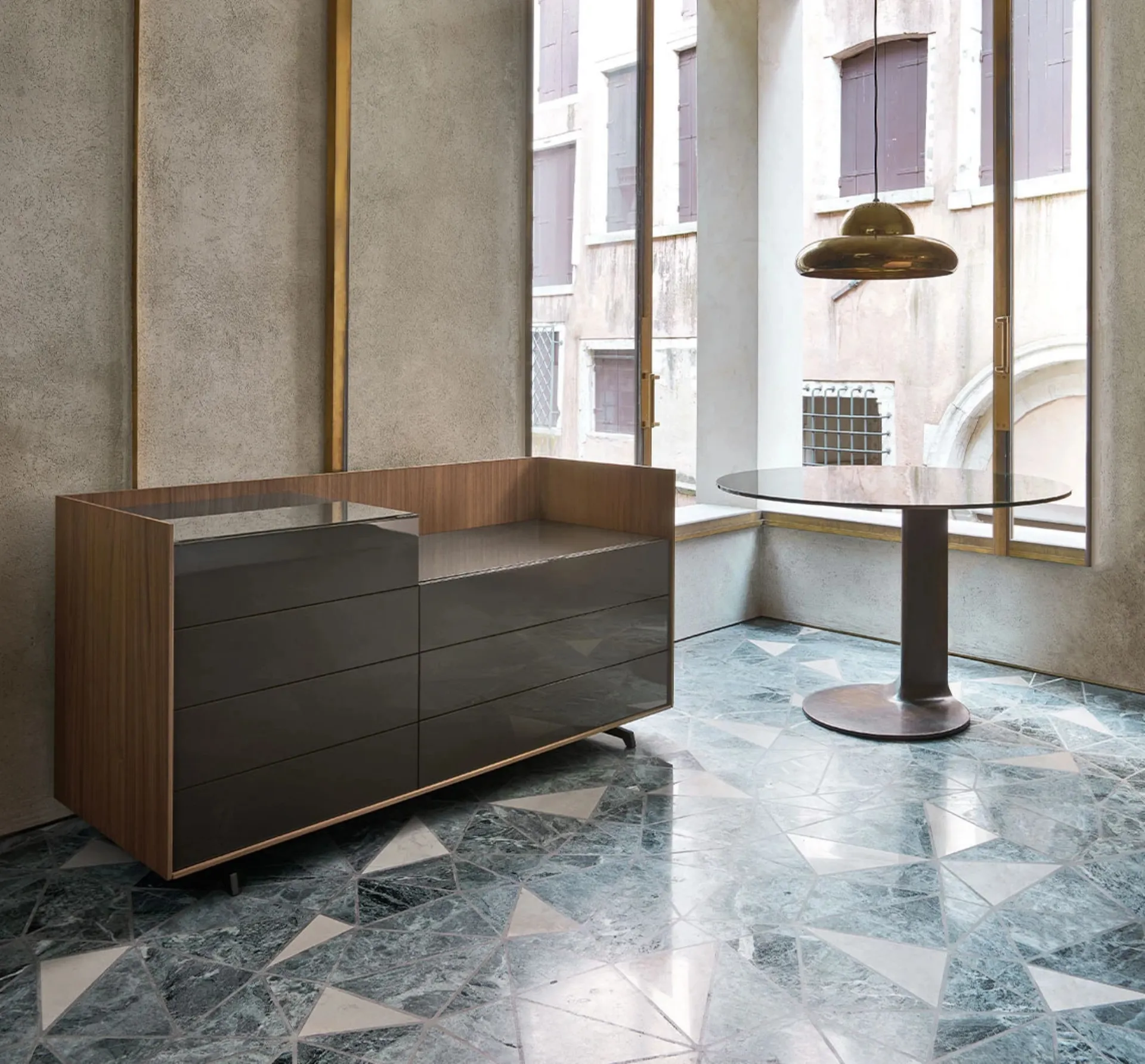 Scopri Comodini design e mobili con cassetti Sangiacomo! Il modello Cabaret Glass Comò costruito in laccato lucido è il miglior acquisto.