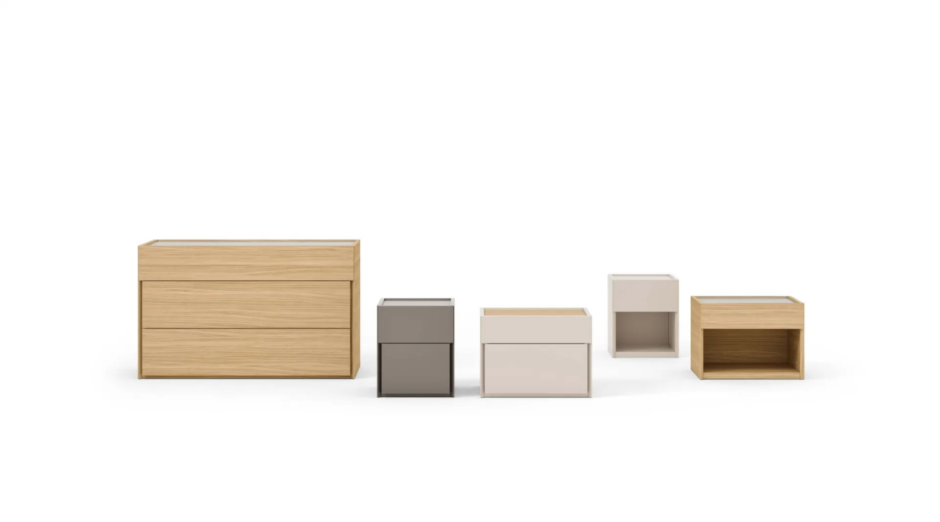 Un ricco catalogo di cassettiere Maronese: i comodini moderni in melaminico, come Gruppo 45°, sono tra le soluzioni più originali.