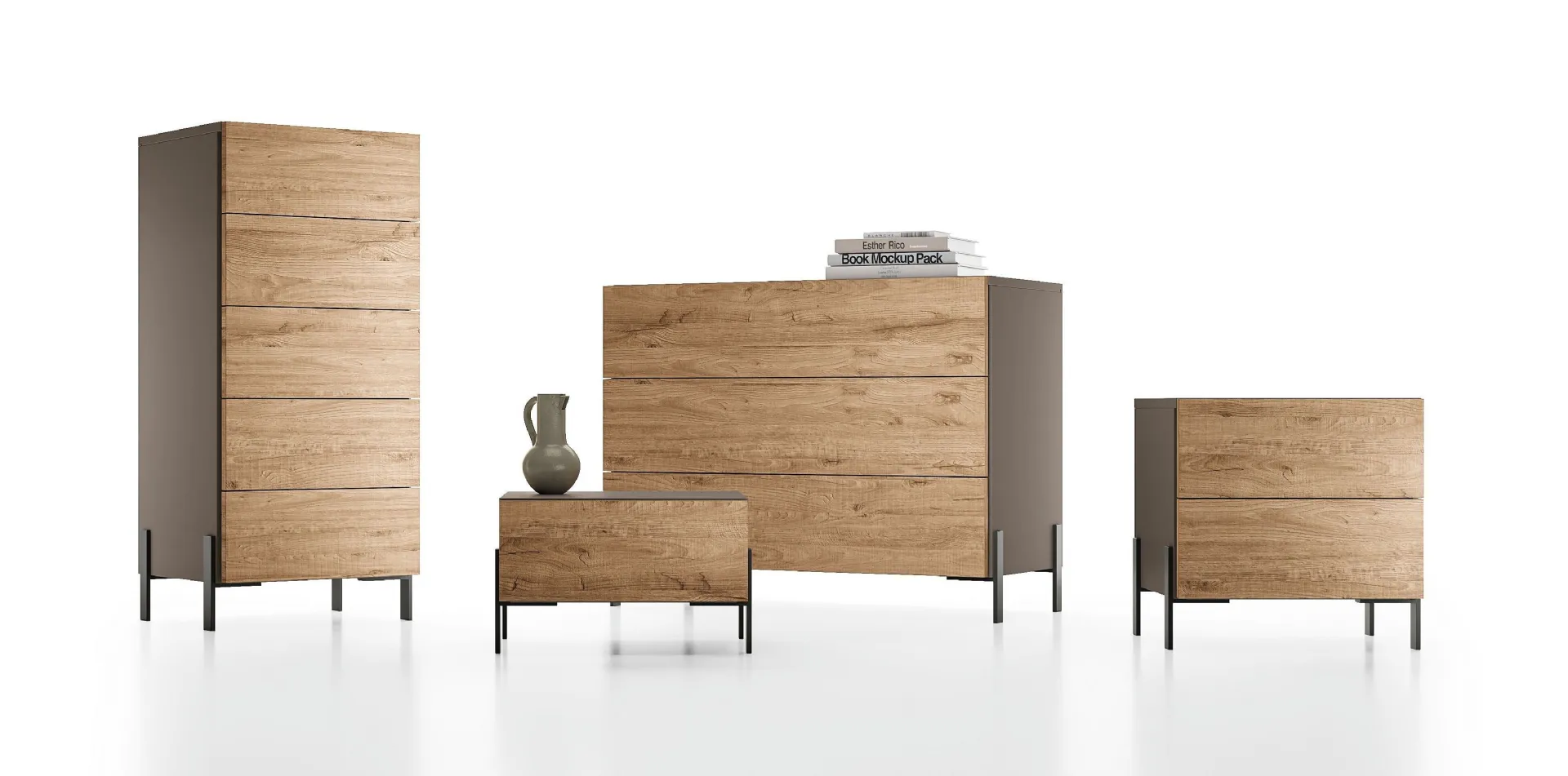 Vuoi arredare la camera da letto con Comodini e cassettiere di Spagnol Mobili? Ti presentiamo il modello Gruppo Notte Velvet in legno per spazi moderni.