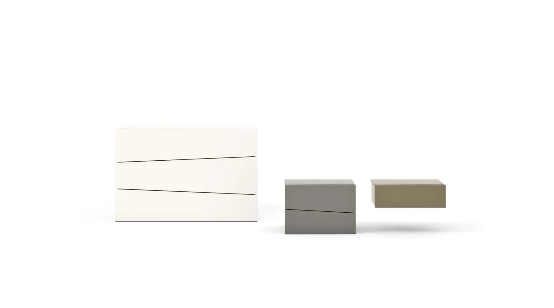 Una ricca gamma di cassettiere Maronese: i comodini moderni in laccato opaco, come Gruppo Scuderia, sono tra le soluzioni più belle.
