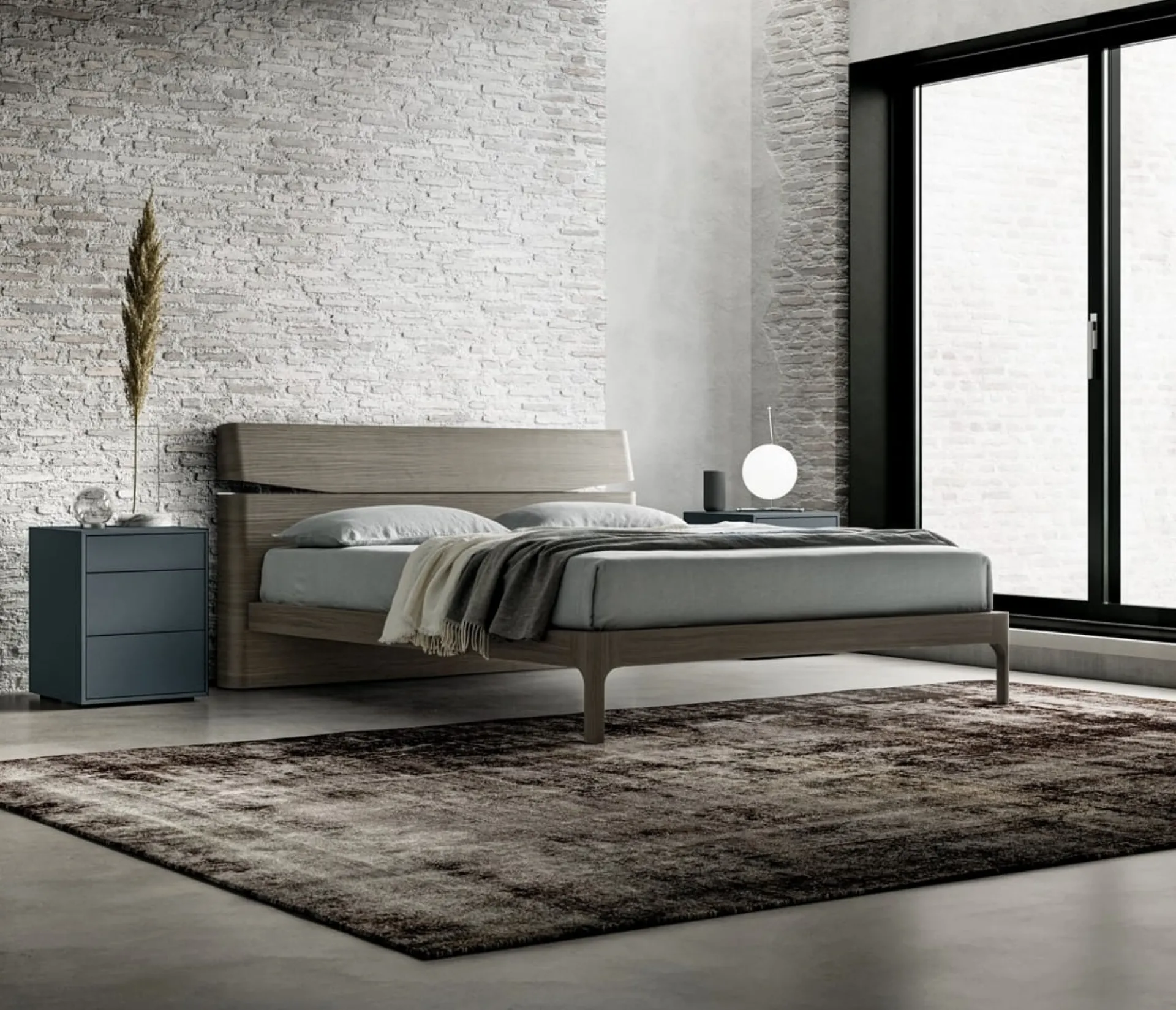 Se desideri letti matrimoniali con testiera, eccoti il modello Grecale in melaminico per valorizzare la camera da letto.