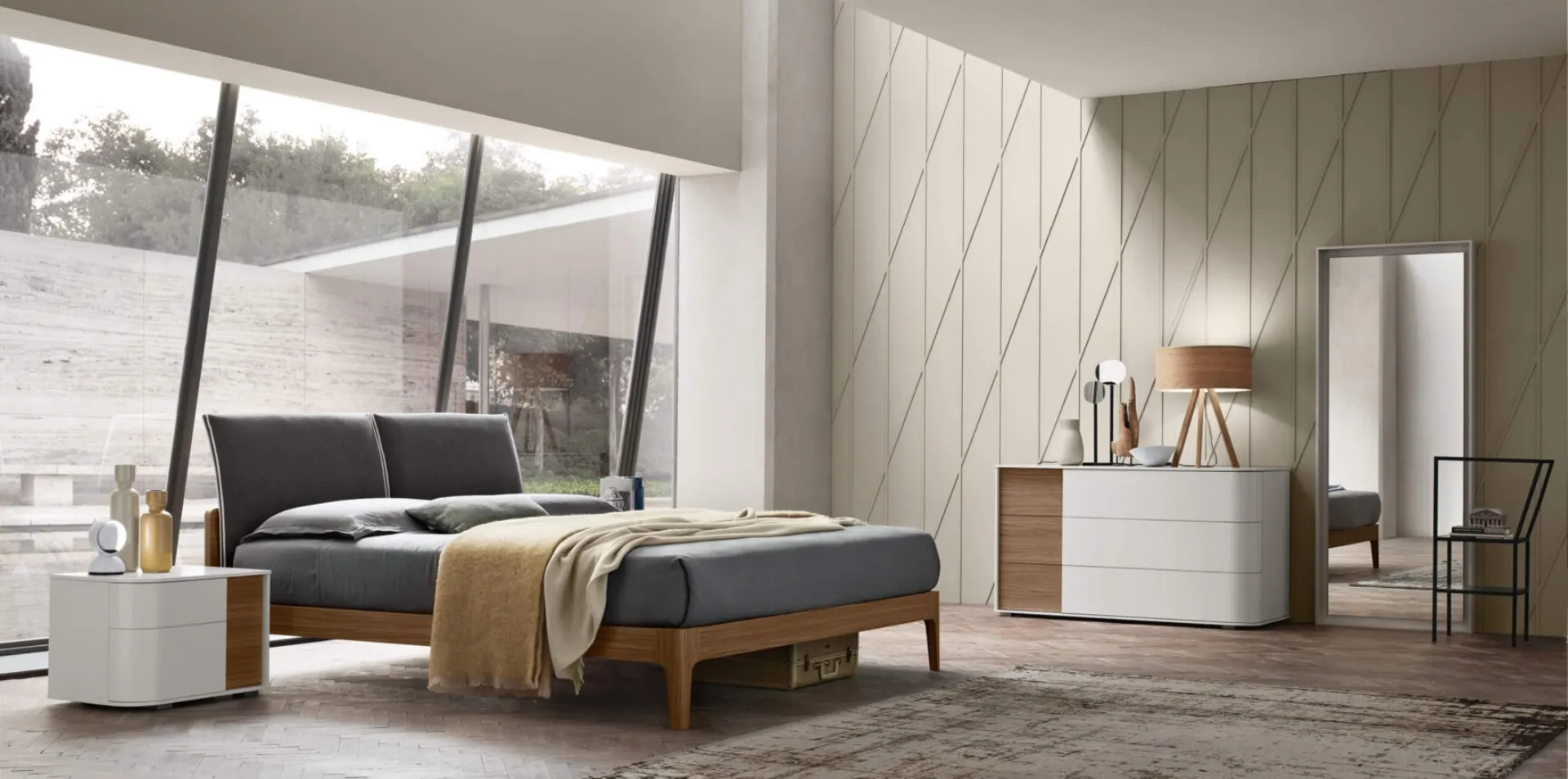 Se cerchi letti matrimoniali imbottiti, ecco qui il modello Lena in tessuto per impreziosire la zona notte.