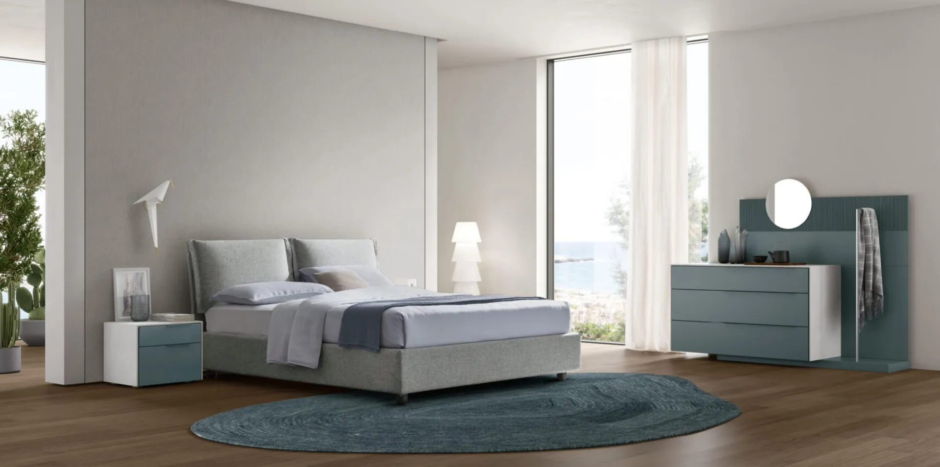 Se desideri letti matrimoniali con contenitore, ecco qui il modello Lola in tessuto per impreziosire la zona notte.