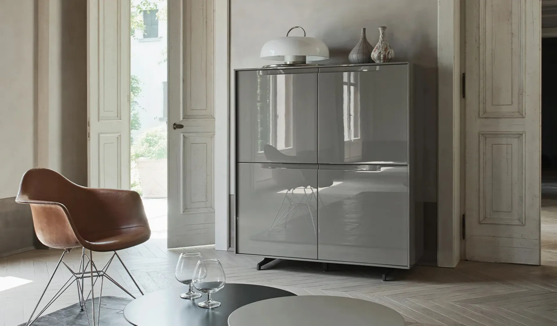 Arreda un living operativo e pratico con questa madia Vela 03 di Sangiacomo: scopri le più esclusive Madie in laccato lucido.