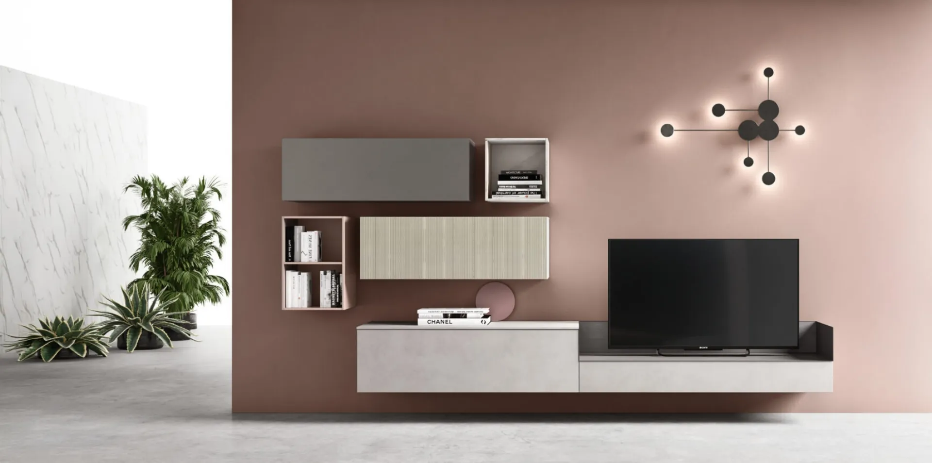 Clicca e scopri il modello MobileTV sospeso sm2371 Maronese: questo mobile per la televisione in melaminico è tra le più originali soluzioni per il soggiorno.