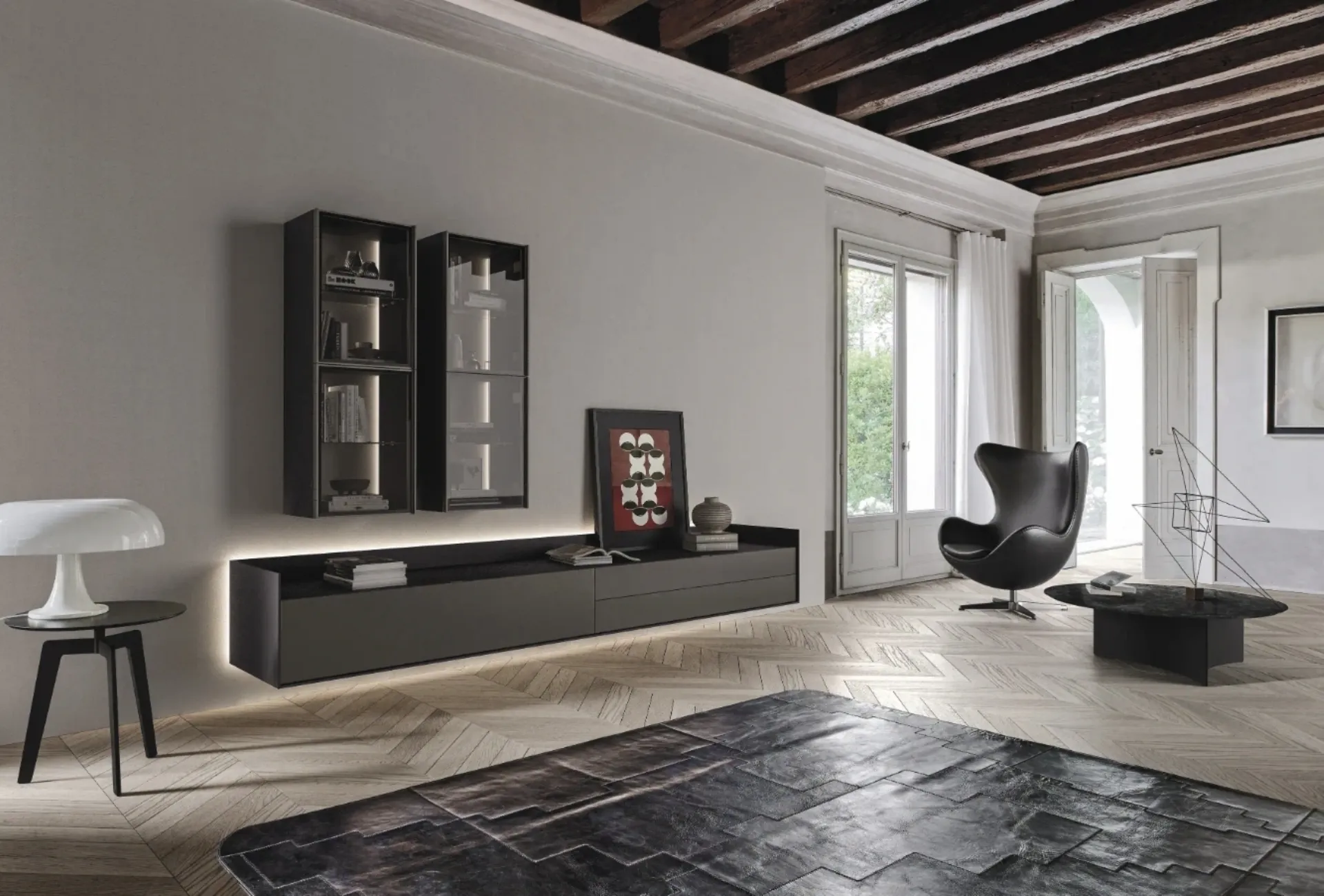 Mobili giorno Sangiacomo in laccato opaco: clicca e scopri di più sul modello Cabaret One 02, perfetto per ultimare spazi moderni.