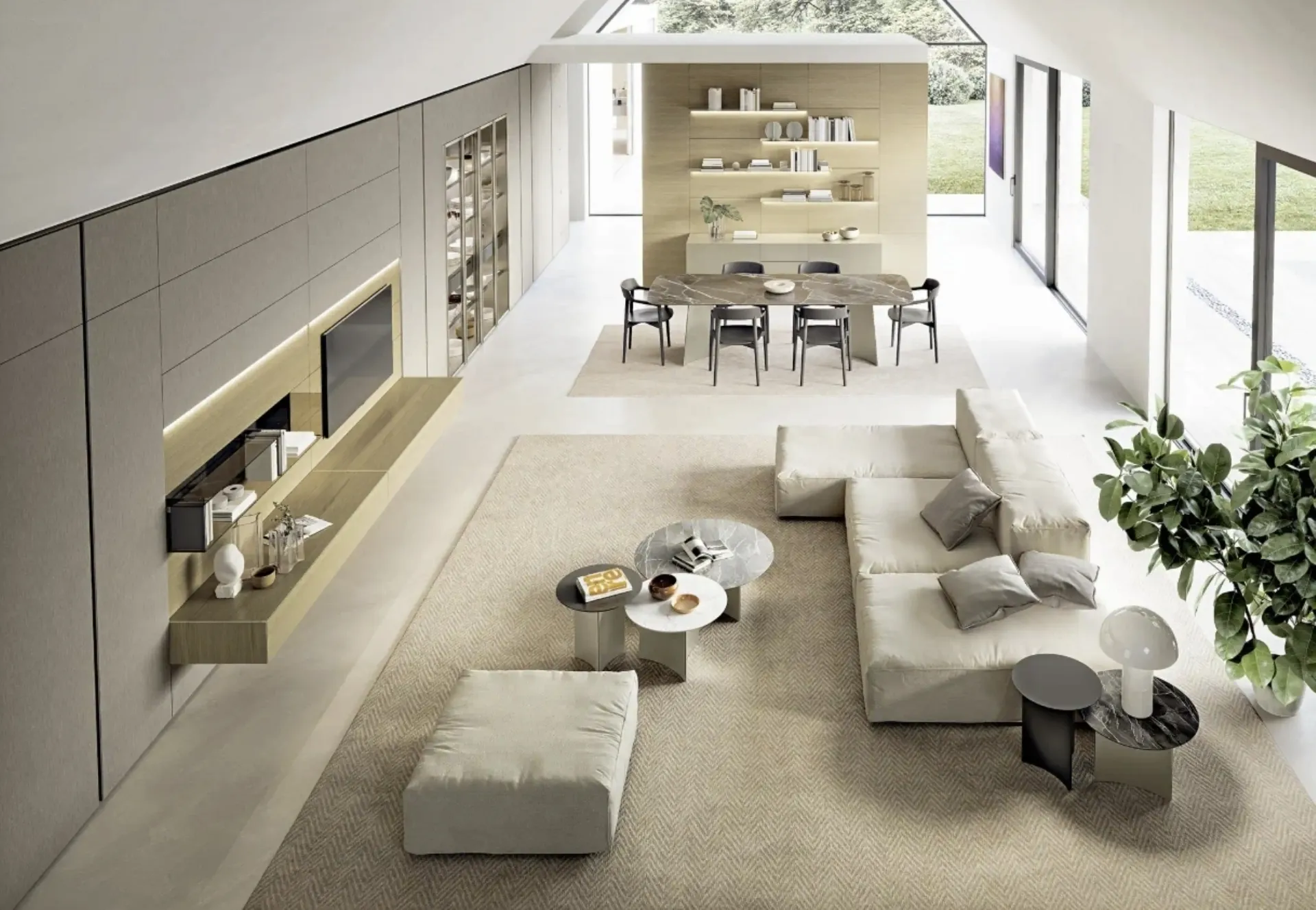 Vuoi progettare un living pratico e operativo? Ti offriamo la parete attrezzata Domino Boiserie 02 Sangiacomo dalle forme decise moderne.