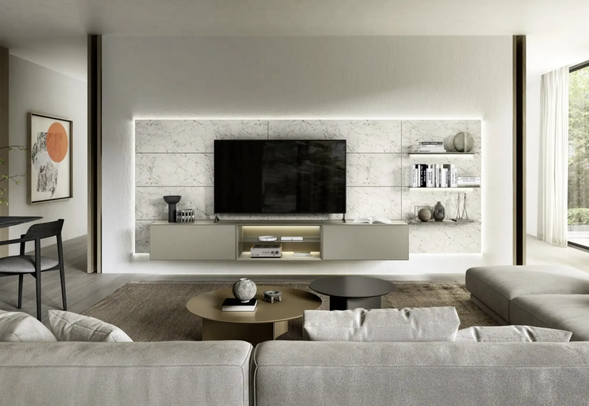 Questa parete attrezzata è una delle soluzioni della firma e ti consentirà di allestire la zona giorno secondo le più personali esigenze abitative. Attraverso un gioco dinamico di accostamenti fra accessori a giorno o vani chiusi, le Pareti Attrezzate moderne arredano il soggiorno usufruendo al meglio di ogni spazio. Per informazioni e preventivi sulla Parete Attrezzata Domino Boiserie 05 di Sangiacomo in foto contattaci! Il modello proposto è realizzato in laccato opaco, ma grazie ad una grande varietà di texture, cromie e forme, potrà adattarsi a stili di ogni tipo.