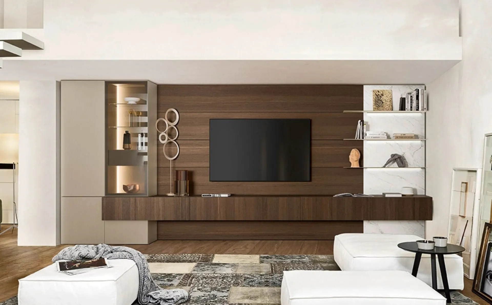 Dato che il living deve essere uno spazio pratico e bello da vedere, sono necessari alcuni mobili belli e funzionali come le Pareti Attrezzate. Lasciati ispirare da un ricco catalogo di mobili per la zona giorno e potrai trovare la parete attrezzata che fa per te. Sangiacomo mette a disposizione inediti modelli di mobili soggiorno, diversi per stile e forme, texture e componenti: scopri nel nostro punto vendita l'Arredamento Casa delle migliori marche. La Parete Attrezzata Lampo 004 di Sangiacomo nella fotografia è una delle più belle soluzioni d’arredo sul mercato: l'alta componibilità e le differenti opportunità di progettazione la rendono pratica e sofisticata.
