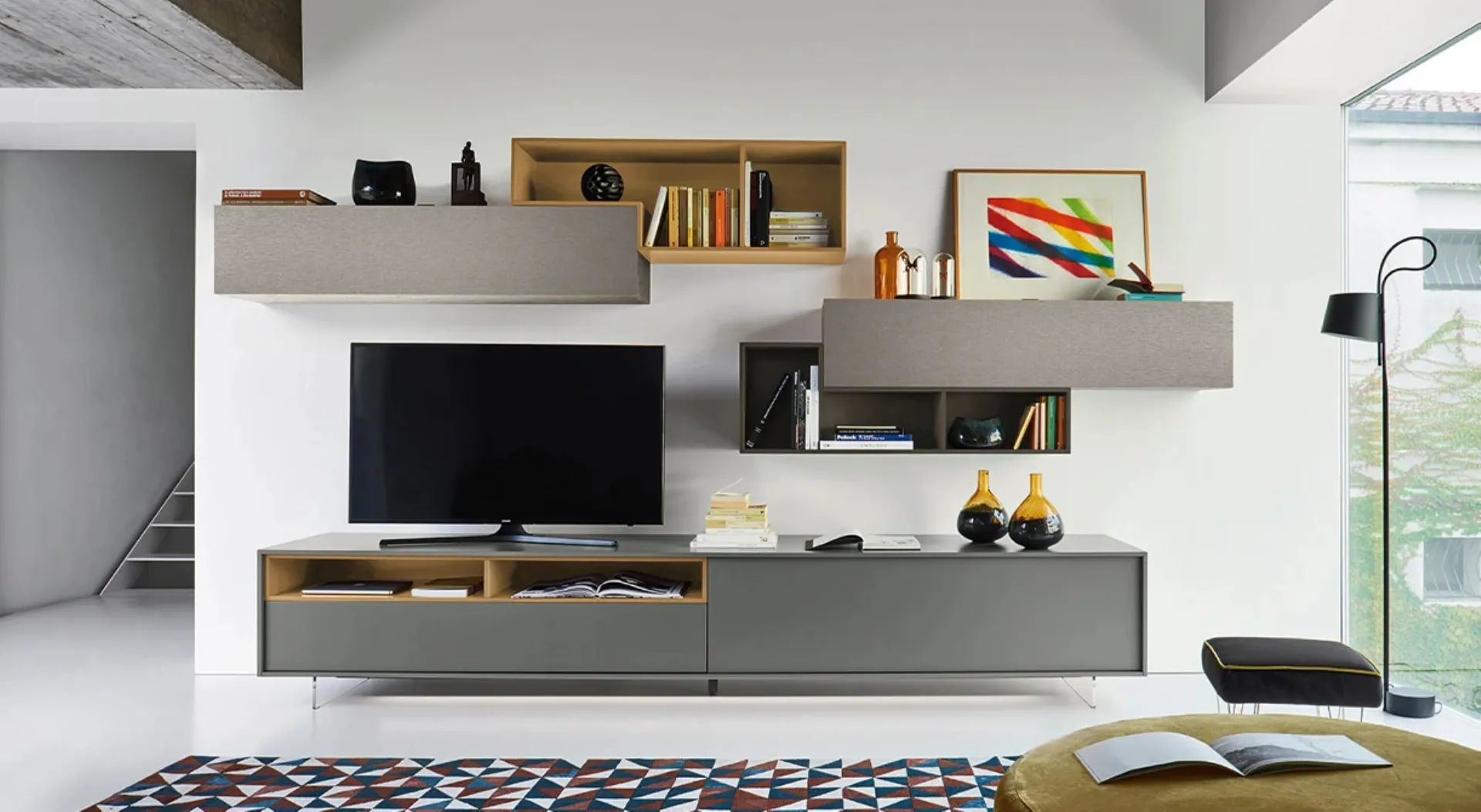 Se vuoi completare un soggiorno pratico e dinamico dalle linee moderne, ti presentiamo la parete attrezzata Lampo 042 Sangiacomo.