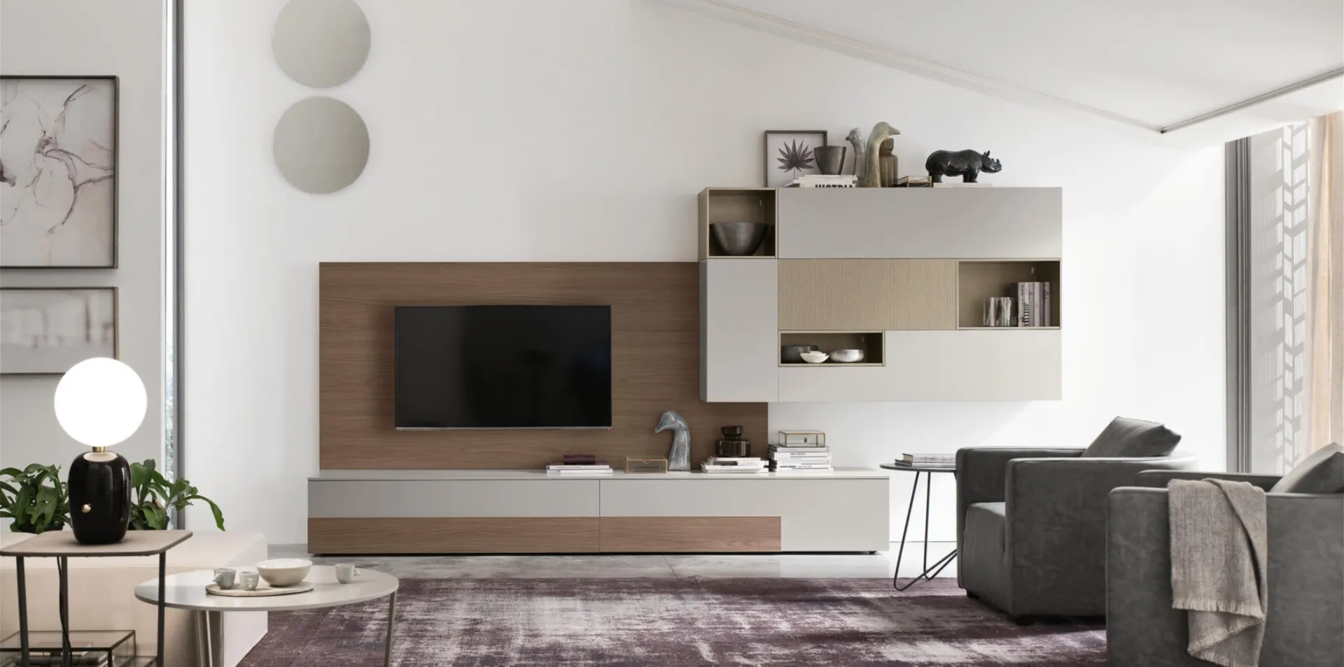 Le Pareti Attrezzate hanno assunto un posto di primo piano nella zona giorno delle nostre case: sono arredi plurifunzionali e salvaspazio sempre realizzabili su misura per te. Attraverso un gioco dinamico di accostamenti fra elementi a giorno o vani chiusi, le Pareti Attrezzate moderne arredano il soggiorno usufruendo al meglio di ogni spazio. Questa parete attrezzata è una delle soluzioni del brand e ti permetterà di progettare la zona giorno seguendo le più personali problematiche abitative.