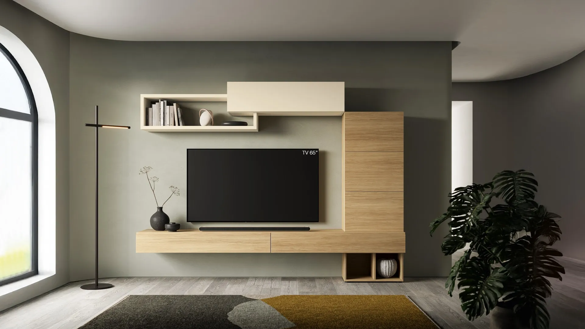 Vuoi progettare un living pratico e operativo? Ecco a te la parete attrezzata Pratico PTG408 SantaLucia dalle linee decise moderne.
