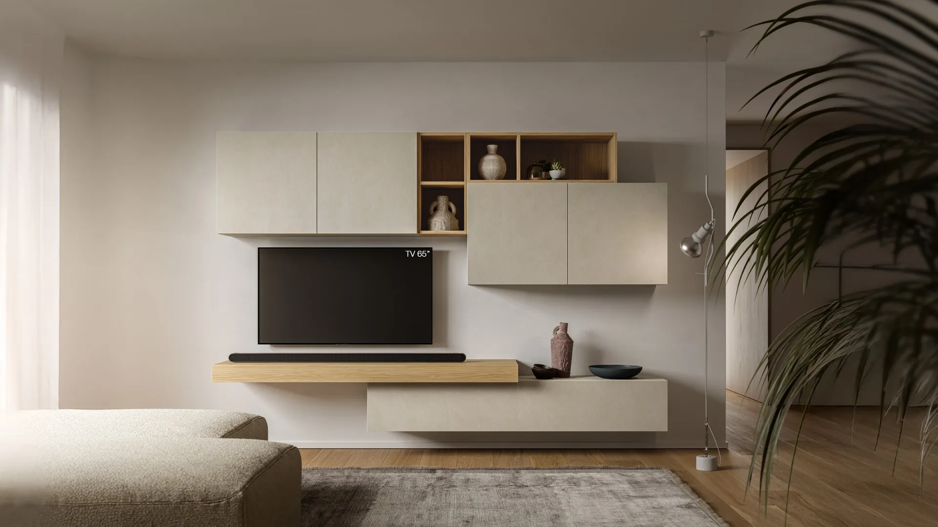 Clicca e scopri di più sulla parete attrezzata Pratico PTG418 della marca SantaLucia: è la soluzione dalle linee moderne perfetta per te.