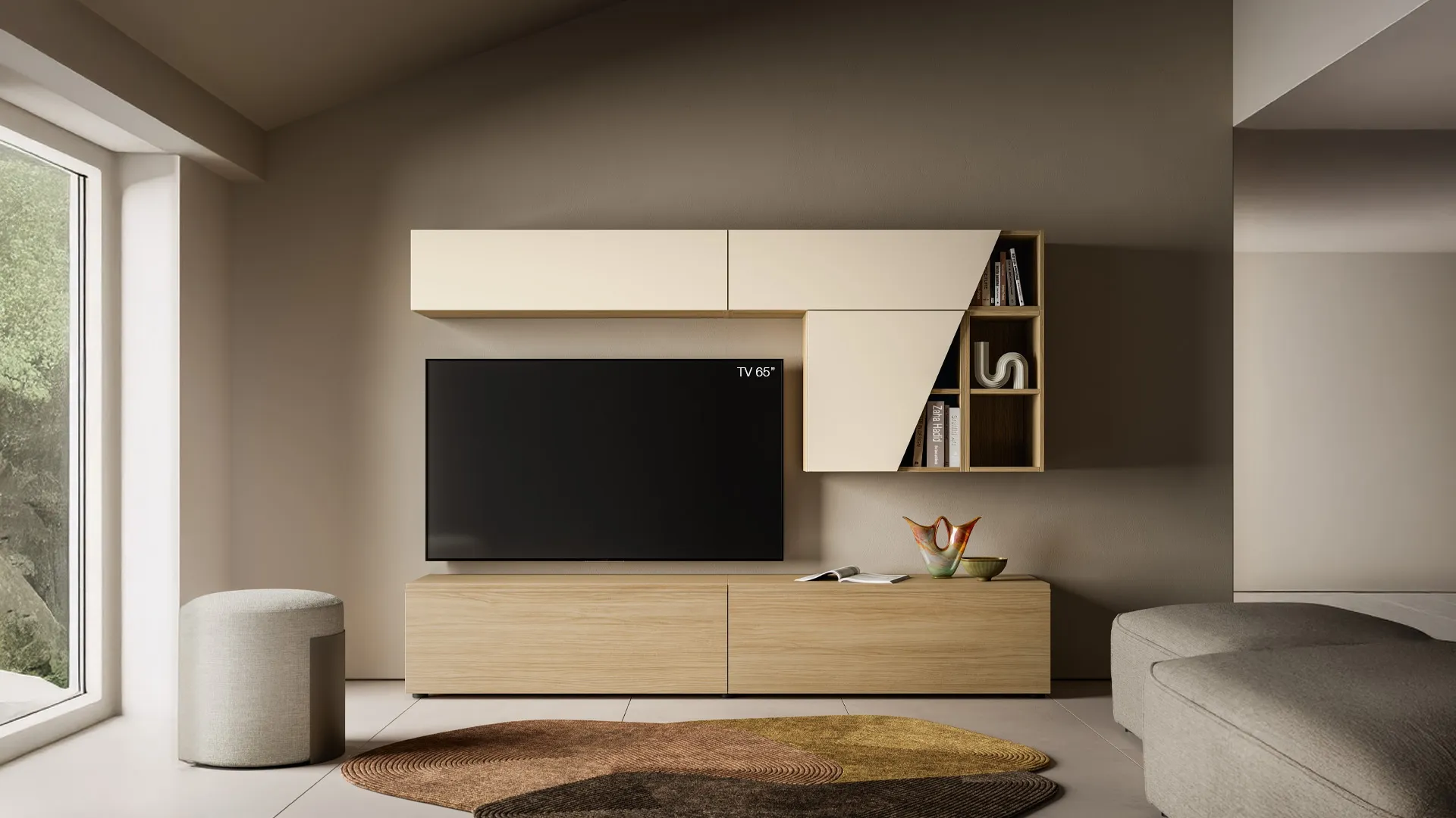 Vuoi ammobiliare un living operativo e pratico? Ti presentiamo la parete attrezzata Pratico PTG427 SantaLucia dalle forme decise moderne.