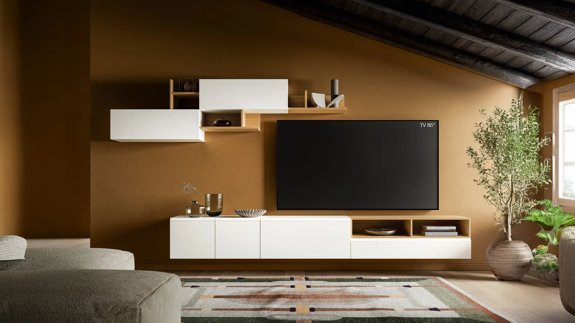 A muro o freestanding per organizzare al meglio un open space, le più esclusive composizioni d’arredo sul mercato arredano il soggiorno usufruendo al meglio di lo spazio disponibile. La Parete Attrezzata Pratico PTG436 di SantaLucia nella fotografia possiede componibilità su misura e differenti possibilità di personalizzazione: scopri la parete attrezzata qui disponibile e contattaci per maggiori info e preventivi. Per soddisfare le eterogenee problematiche abitative di ognuno, brand mette a disposizione dei suoi clienti una ricca gamma Pareti Attrezzate moderne particolarmente funzionali e connotate da un tocco di stile.