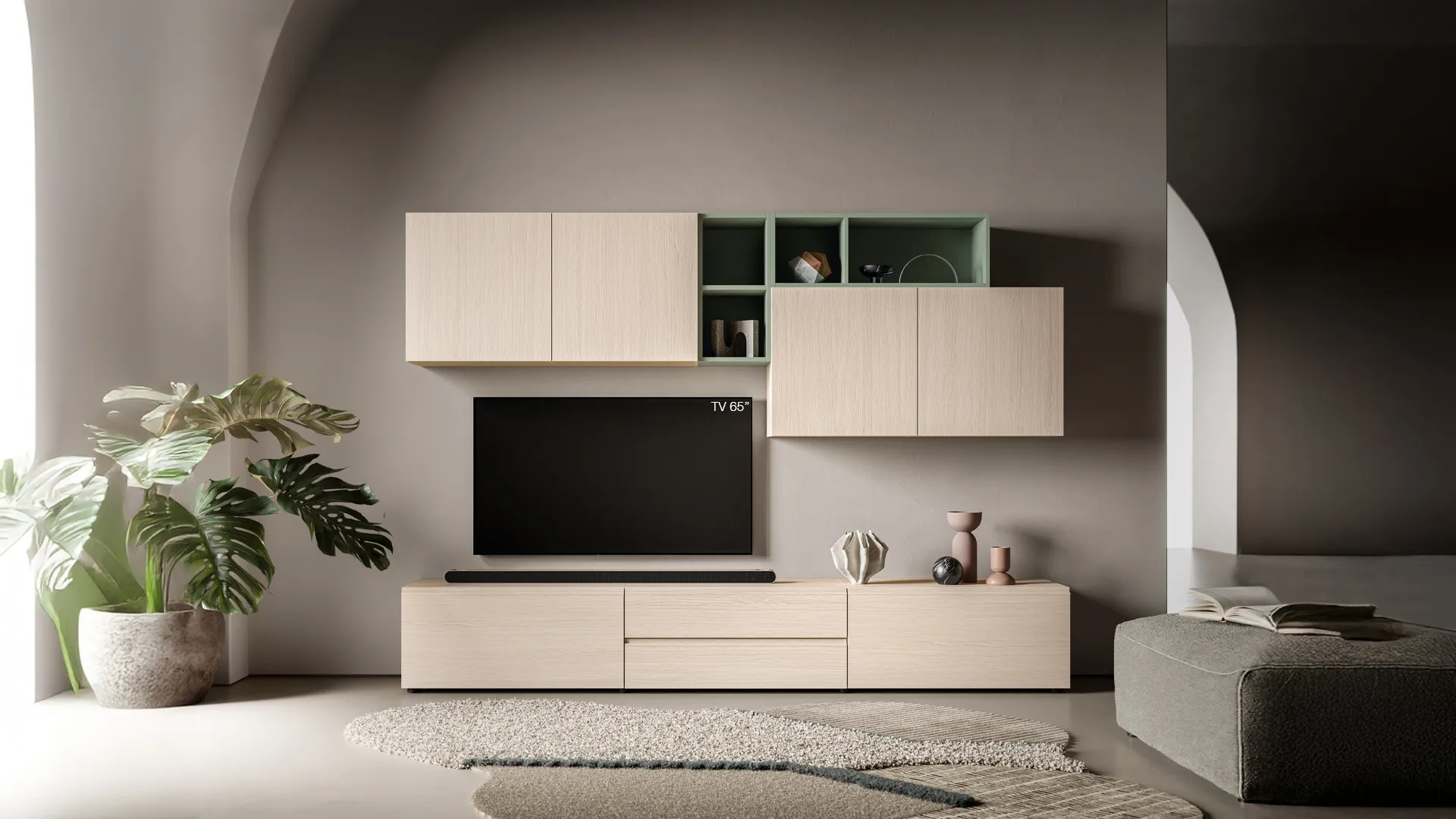 Pareti attrezzate e mobili giorno SantaLucia: clicca e scopri il modello Pratico PTG445 e potrai arricchire stanze moderne di ogni tipo.