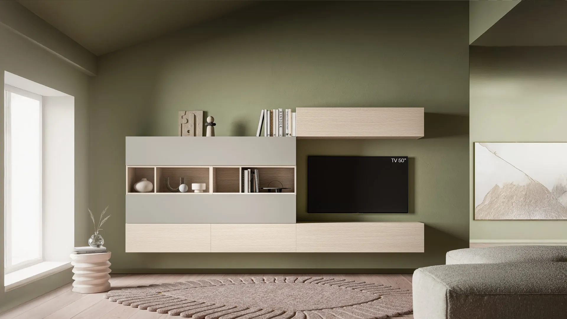 Vuoi ammobiliare un soggiorno pratico e dinamico? Ti presentiamo la parete attrezzata Pratico PTG449 SantaLucia dalle forme decise moderne.