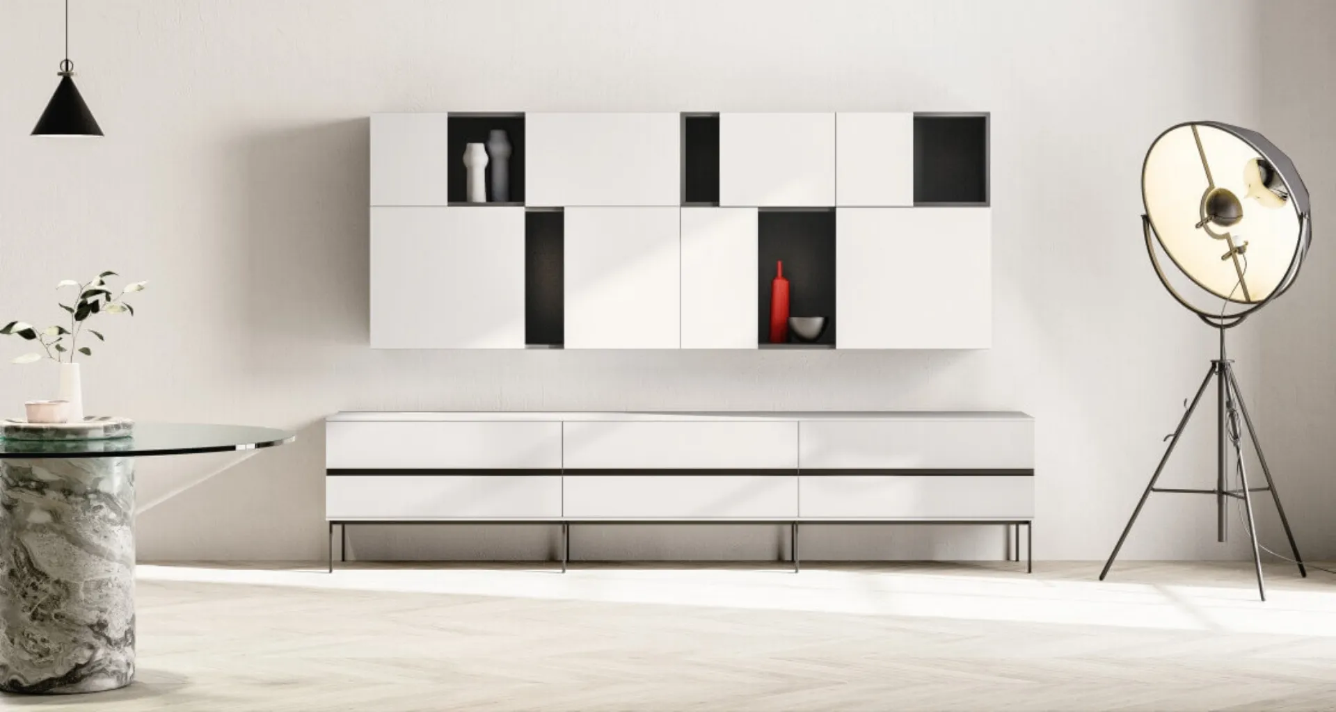 Vuoi allestire un living pratico e dinamico? Ti offriamo la parete attrezzata SpaceMakers day Grip Zalf dalle forme decise moderne.