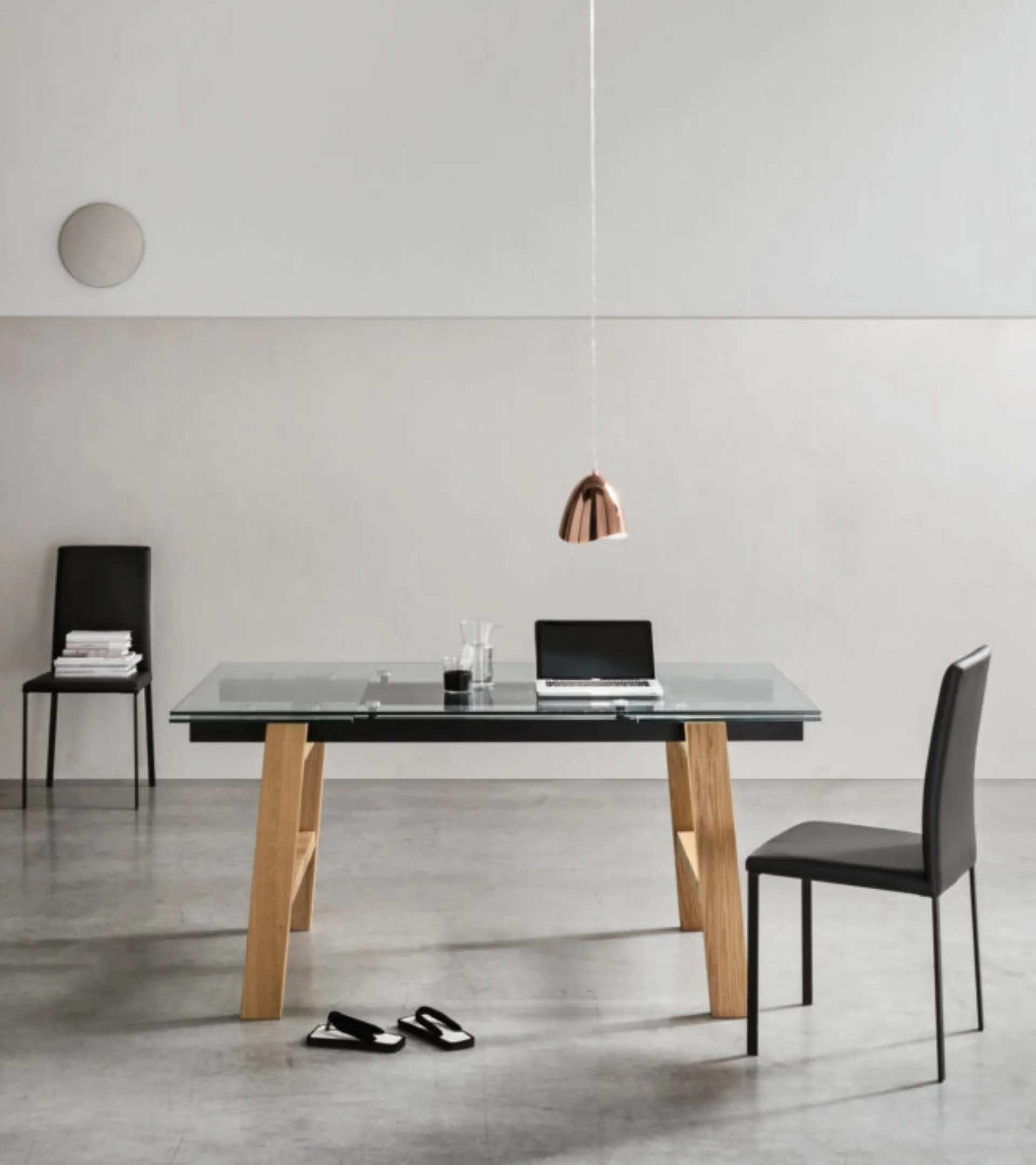 Se vuoi tavoli allungabili moderni, ecco a te il modello da pranzo in vetro Felix dell'azienda Maronese.